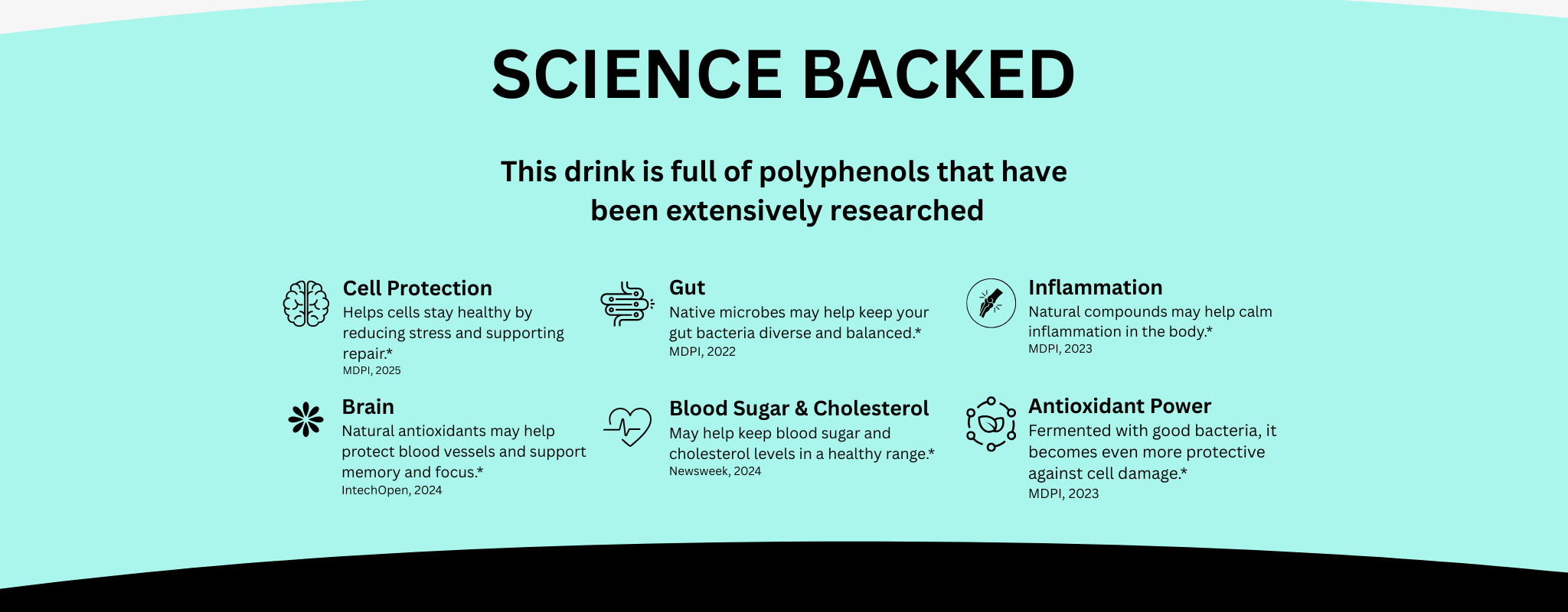 For more than 7,000 years, olive mill water has been treated as a discarded by‑product of olive oil production. We’re the first to transform this overlooked resource into a high‑performance functional beverage. Naturally rich in polyphenols like hydroxytyrosol, it’s fast becoming one of the most exciting new entrants in the functional wellness space. And we’ve taken it even further: through fermentation, we’ve enhanced the bioavailability of these powerful plant compounds to help your body make the most of them.*